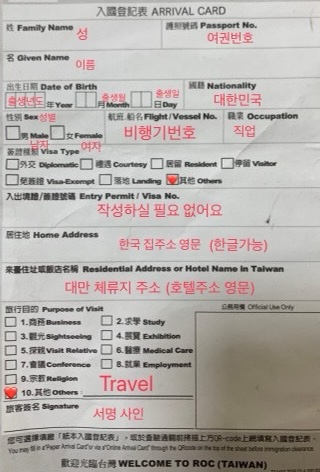 뉴욕여행을 한번이라도 다녀오신 분들은 온라인 자동출입국 심사라는 제도를 본다면 당연히 신청해야지 하시는 분들이 많으실거에요! 실제로 뉴욕은 출입국심사만 짧게는 한시간에서 길게는 두시간 이상 걸릴때도 있어요. 하지만 대만은 출입국심사 시간이 길지가 않아 따로 온라인으로 미리 신청하실 이유가 없어요. 더군다나 처음 신청하셔서 여권에 도장까지 받으시는 과정에서 이미 수십분에서 한시간가량 여행시간을 낭비하시게 됩니다. 그러니 저는 따로 신청할 필요성을 전혀 못느꼈어요! 따라서 저는 종이 입국신고서를 소개할게요!